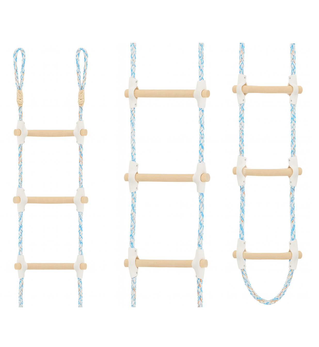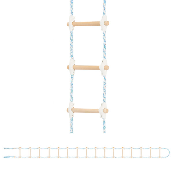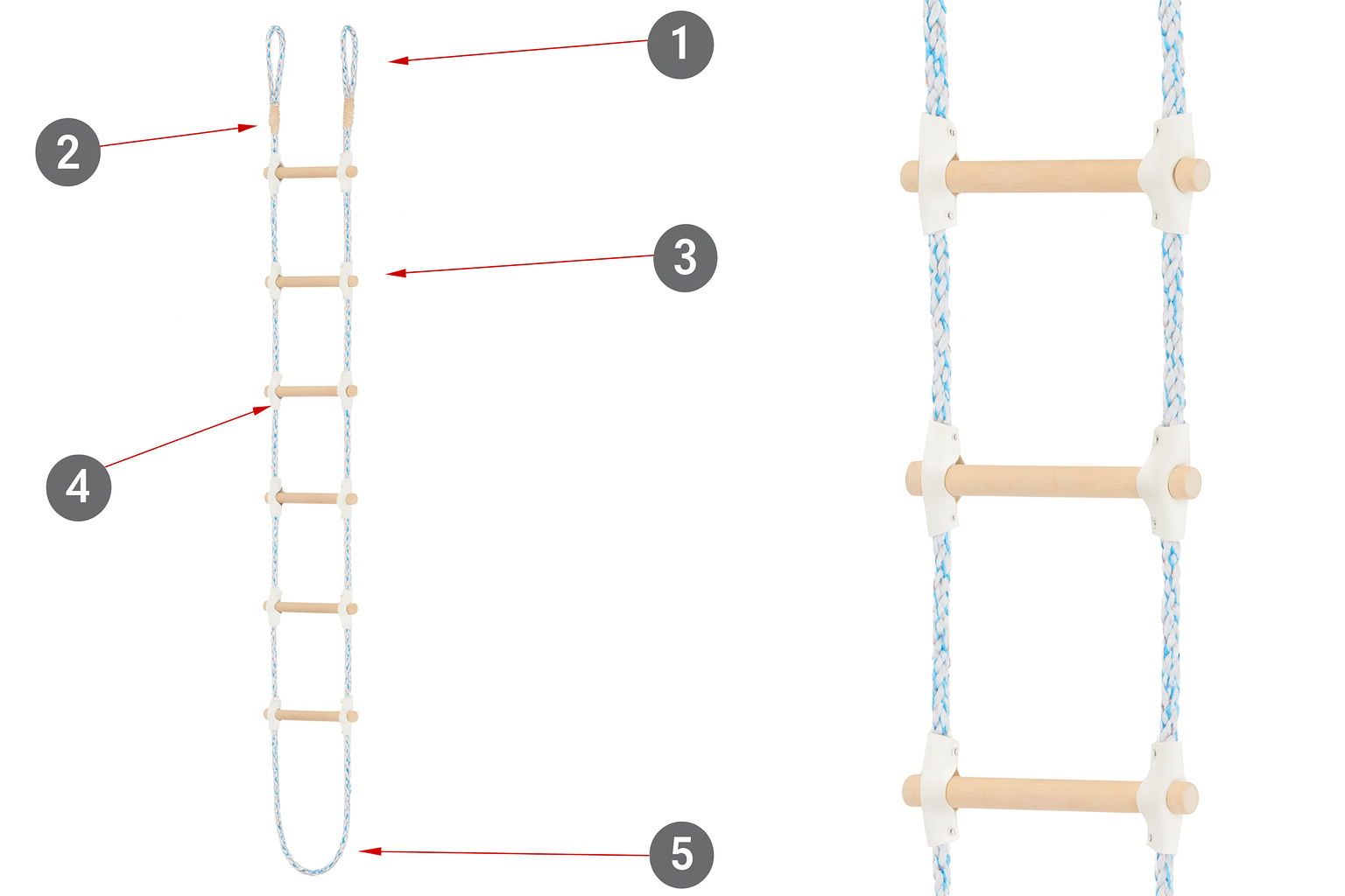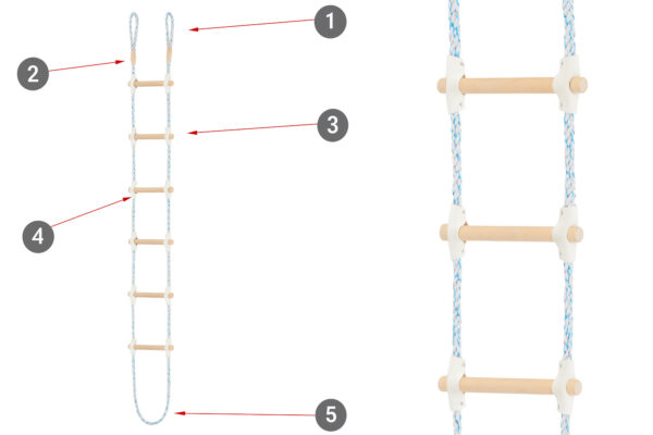 - Două bucle de agățare din oțel la capetele scării permit o fixare rapidă; diametrul buclelor de suspendare este de aproximativ 20 cm.