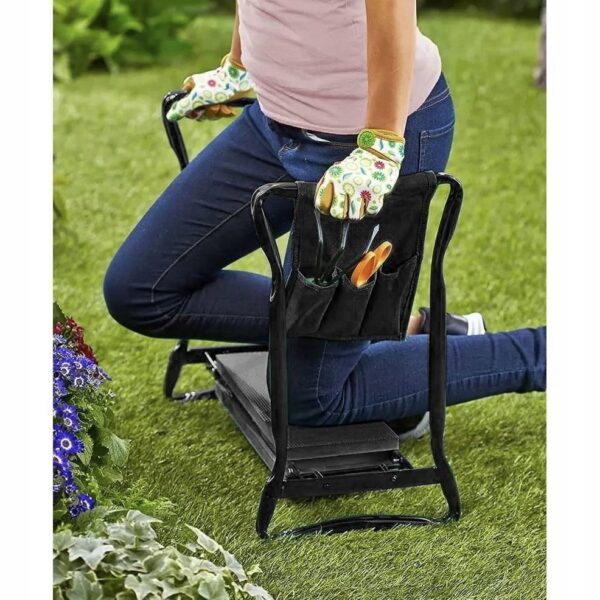 Datorită designului pliabil, scaunul este ușor de transportat și depozitat, ceea ce îl face potrivit pentru utilizare în diverse locuri. Este fabricat din material de înaltă calitate care garantează siguranță și confort. Pentru un confort sporit, scaunul are și un buzunar pentru unelte. Velcro-ul vă permite să îl atașați în funcție de propriile preferințe.
