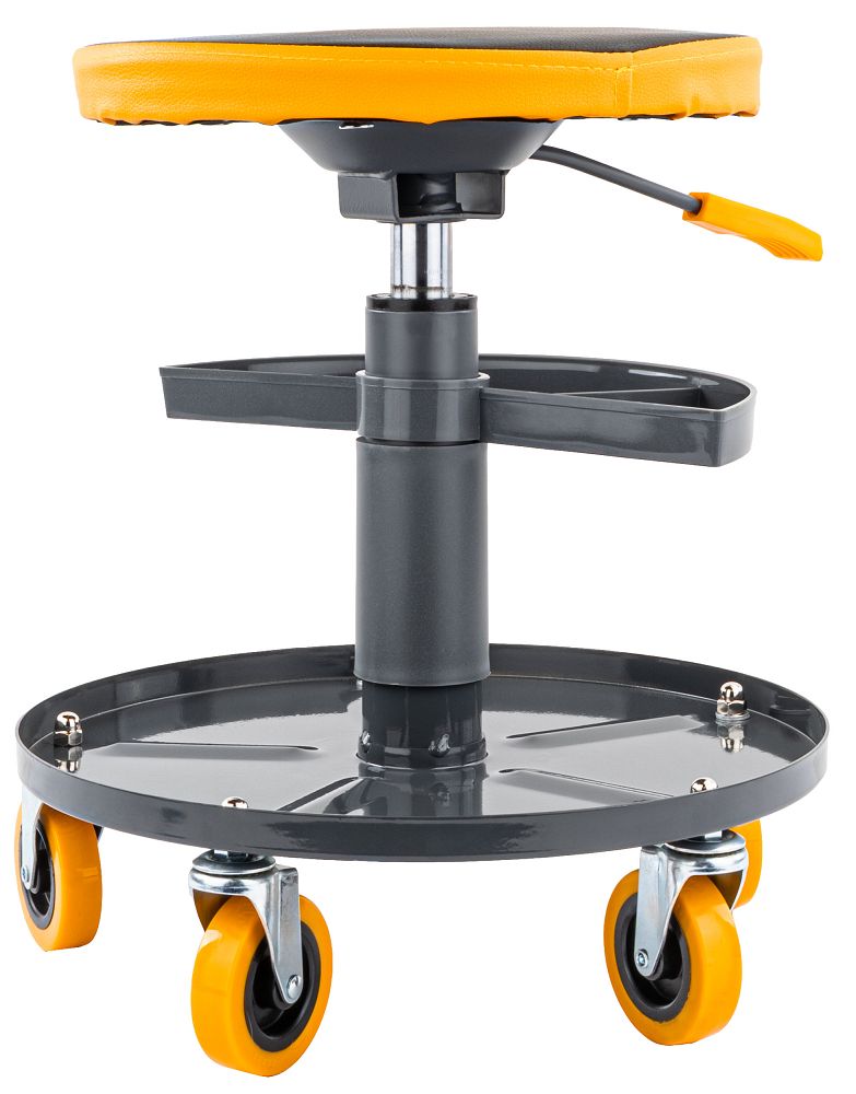 Șezutul cu diametrul de 30 cm oferă un suport sigur și o poziție confortabilă, pe care le veți aprecia în timpul lucrărilor mai lungi de asamblare și reparații. Scaunul are două suporturi pentru scule care vă permit să depozitați convenabil sculele și accesoriile cele mai frecvent utilizate. Această soluție reduce timpul petrecut în căutarea sculelor, îmbunătățește organizarea muncii și vă permite să mențineți ordinea fără a fi nevoie să vă ridicați constant.