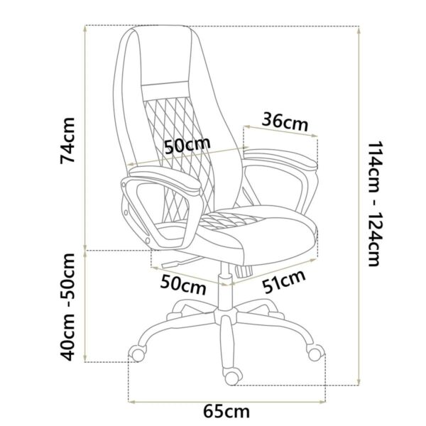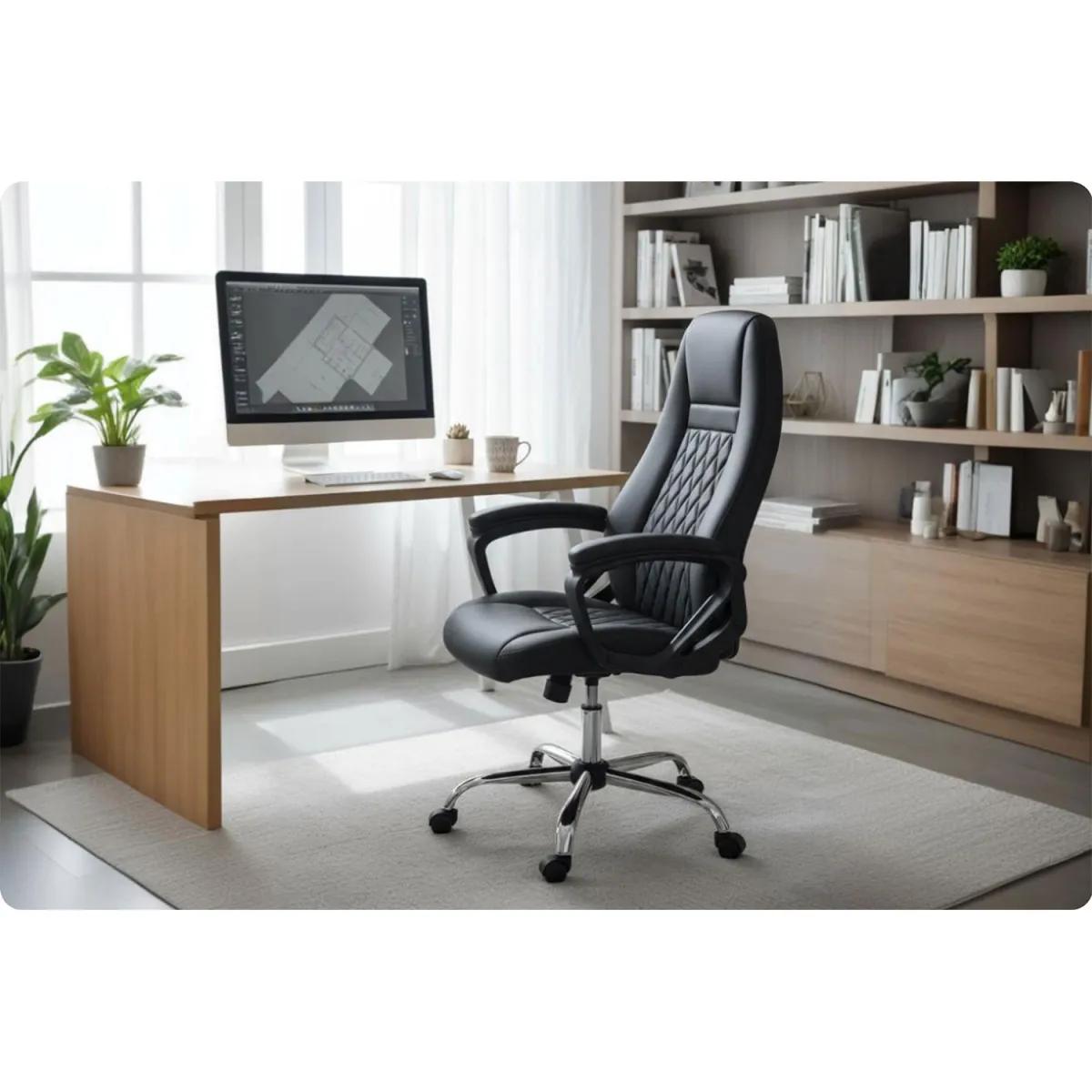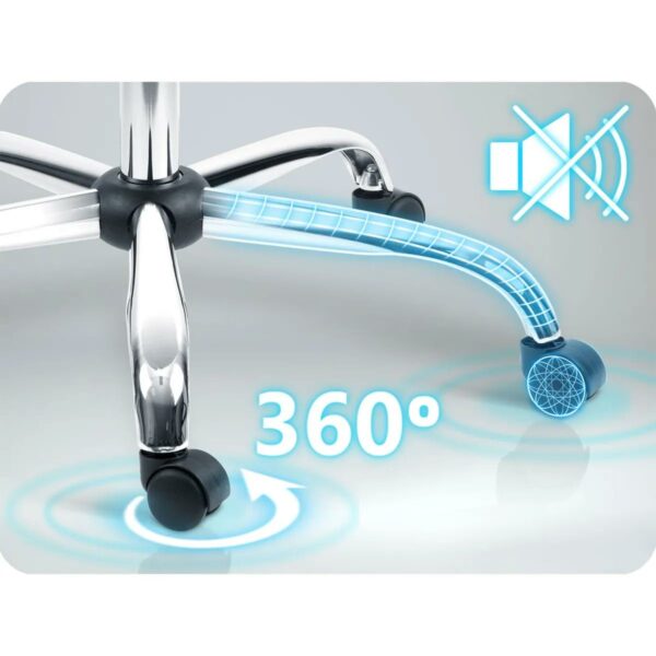 Spătarul ergonomic, cu tetieră și tapițerie moale, oferă un suport optim pentru spate chiar și în timpul perioadelor lungi de ședere, în timp ce șezutul reglabil pe înălțime și mecanismul de balansare permit ajustarea individuală a utilizatorului. Stabilitatea este asigurată de o bază cromată solidă cu roți pentru o mișcare lină pe podea. Acest scaun este un plus ideal pentru oricine caută o soluție elegantă și practică pentru biroul de acasă sau spațiul de lucru.