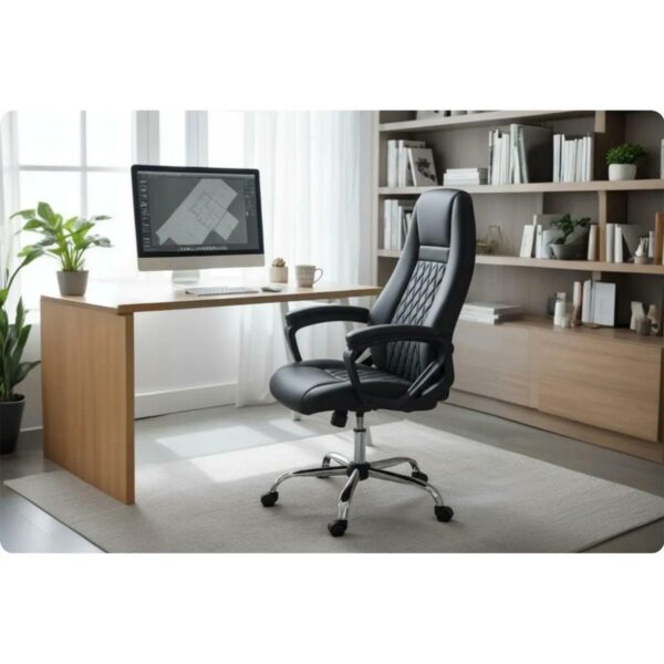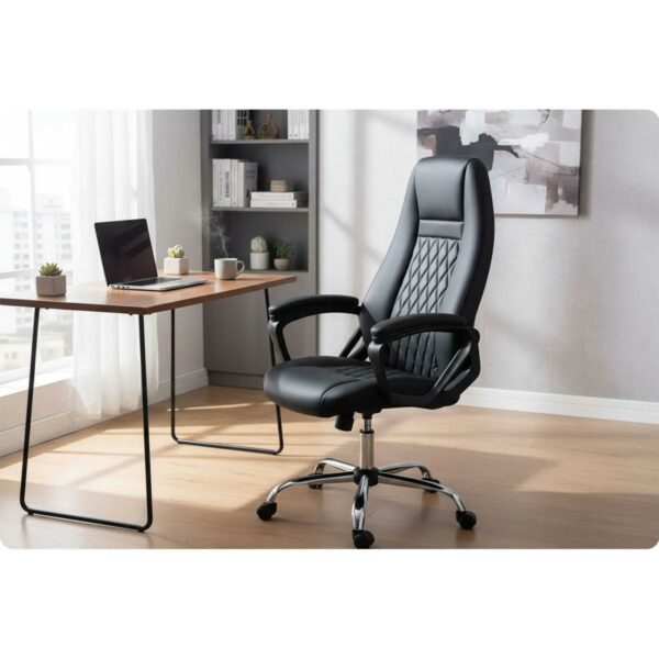 Scaun de birou din piele ecologică, negru | Sofotel combină confortul, eleganța și o construcție robustă, potrivită atât pentru mediile de lucru casnice, cât și pentru cele profesionale. Pe scurt, acest scaun reprezintă combinația ideală de confort, funcționalitate și design modern. Este acoperit cu piele ecologică de înaltă calitate, moale la atingere, dar rezistentă la deteriorări și ușor de curățat.