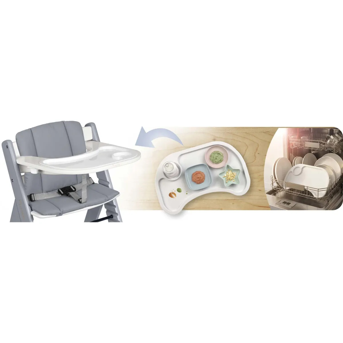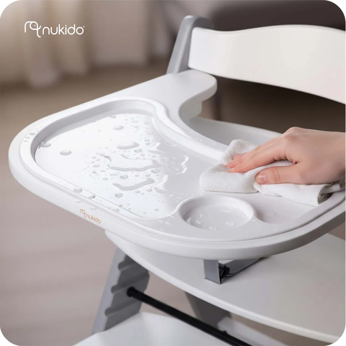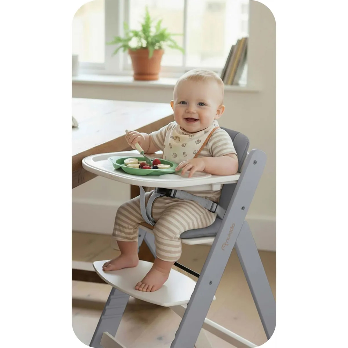Scaunul de masă pentru copii Nelo 2-în-1, alb | Nukido este un scaun de hrănire stabil și sigur, care susține o poziție confortabilă și independentă la masă. Datorită unui set special de centuri de siguranță și unei perne confortabile, devine un prim scaun sigur și confortabil pentru copilul dumneavoastră. Ideal pentru primele mese și momentele petrecute împreună la masă. Dacă copilul dumneavoastră crește, pur și simplu scoateți tava și reglați înălțimea șezutului și a suporturilor pentru picioare.