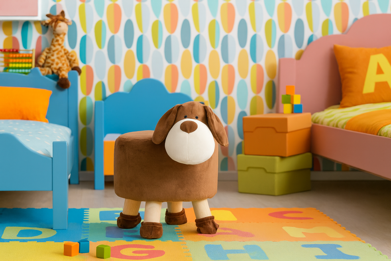 Scaunul pentru copii, 28x25cm | câine este un accesoriu original care oferă un loc practic pentru a sta sau a te odihni, ideal pentru camera unui copil. Scaunul este fabricat din materiale moi care permit o ședere confortabilă, iar umplutura interioară oferă un suport stabil. Datorită dimensiunilor sale compacte, se potrivește confortabil chiar și în spații mai mici, dar în același timp conferă camerei o notă jucăușă și originală. Designul inspirat de girafe va atrage atât copiii, cât și adulții.