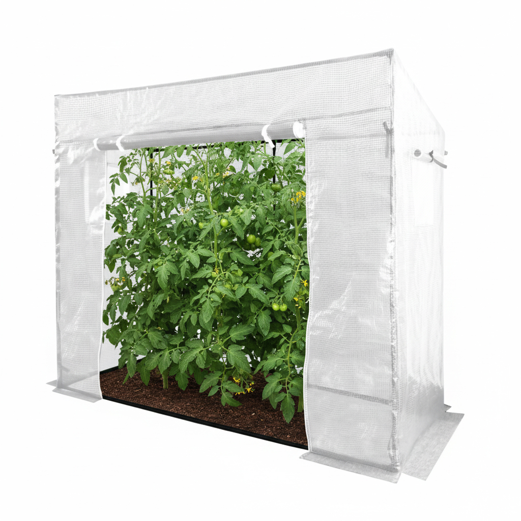 Seră de grădină, 200x77cm, albă | 1,6m2 oferă un spațiu protejat pentru cultivarea roșiilor și a altor legume pe tot parcursul sezonului. Această seră este o soluție ideală pentru cei care doresc să accelereze creșterea plantelor și să le protejeze de temperaturi scăzute, vânt, ploaie sau dăunători. Ventilația atent selectată și materialele rezistente și durabile oferă condiții ideale de creștere chiar și pentru cele mai exigente specii.