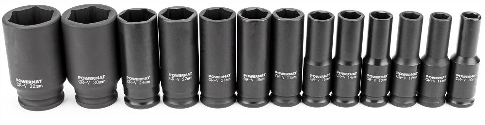 Setul de chei tubulare, 10-32, 1/2′ | PM-ZNU-13-0.5T conține 13 chei tubulare de impact, concepute pentru utilizare precisă în ateliere sau ateliere auto. Dimensiunile capului sunt de la 10 la 32 mm cu un acționare standard de 1/2′. Sunt fabricate din oțel CR-V durabil, cu un orificiu de prindere intern prelucrat cu precizie conform standardelor, prevăzute cu marcaje de dimensiune lizibile și depozitate într-o cutie practică, ceea ce le face ideale pentru utilizare în ateliere auto, ateliere de anvelope și ateliere generale.