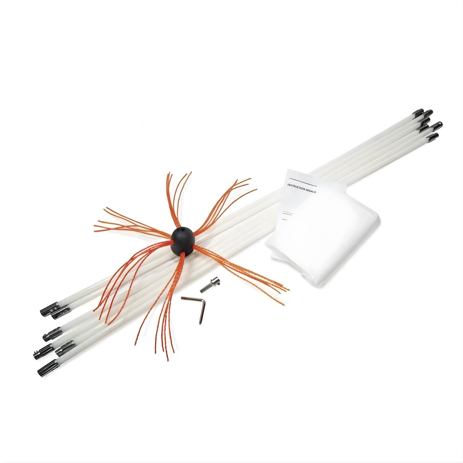 Inima setului este o perie cu peri rigizi din nailon, care îndepărtează eficient funinginea și creozotul la o viteză de până la 800 de rotații pe minut. Perii din nailon răsucesc și răzuiesc depunerile fără a zgâria pereții coșului de fum. Acest lucru face ca curățarea coșului de fum să fie rapidă și eficientă, iar dumneavoastră vă puteți bucura de o îndepărtare eficientă a gazelor de ardere.