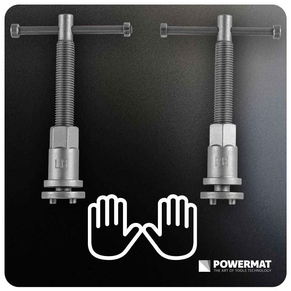 Două prese dreapta și stânga vă permit să lucrați în direcții diferite ale pistonului și un control mai bun la deplasarea înapoi. Adaptarea la etriere reduce riscul de deteriorare. Cheile de 6 mm și 7 mm și două tipuri de extractoare extind posibilitățile fără unelte suplimentare. O carcasă de protecție protejează componentele. Vârfurile magnetice mențin piesa în axa pistonului, crescând controlul și minimizând riscul de deteriorare a sistemului de frânare. Toate piesele sunt organizate și fixate pentru un transport ușor, fără pierderi.