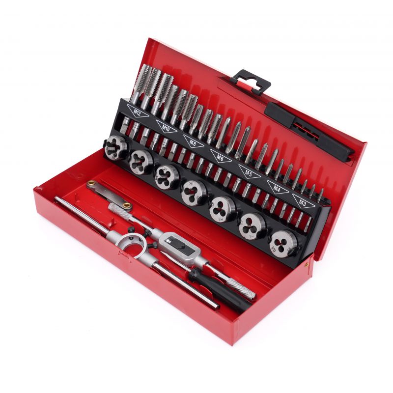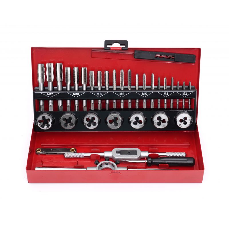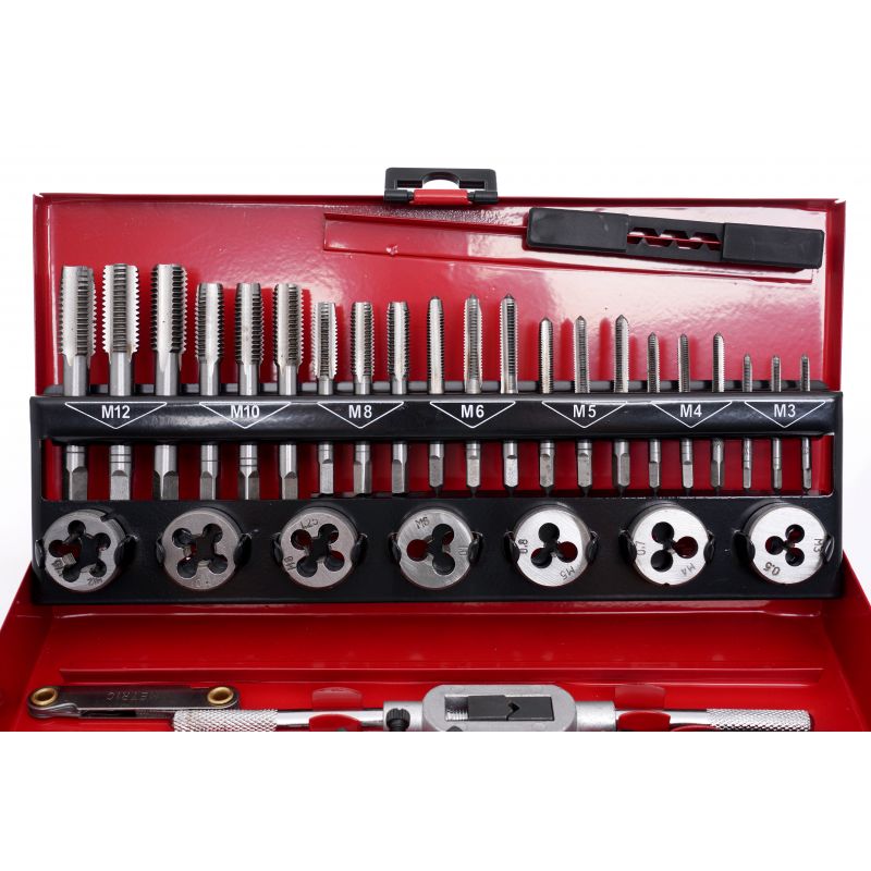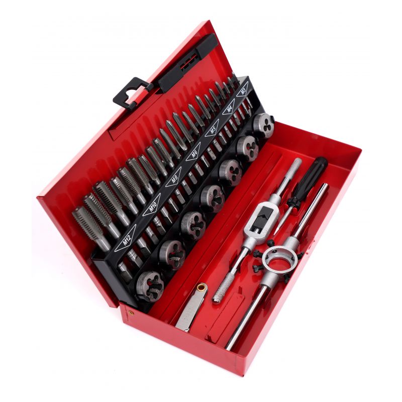 Setul de rodoane și piulițe, 32 buc | KD10090 conține unelte ușor de utilizat, indispensabile în fiecare atelier, garaj de acasă sau loc de muncă. Setul este utilizat pentru repararea îmbinărilor filetate de toate tipurile, în majoritatea materialelor. Sunt fabricate din oțel călit de cea mai înaltă calitate. Tarozii sunt utilizați pentru tăierea filetelor interne.