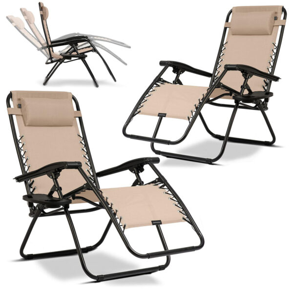 Șezlongul de grădină ChillWell cu pernă, 2pcs, bej | Sofotel
