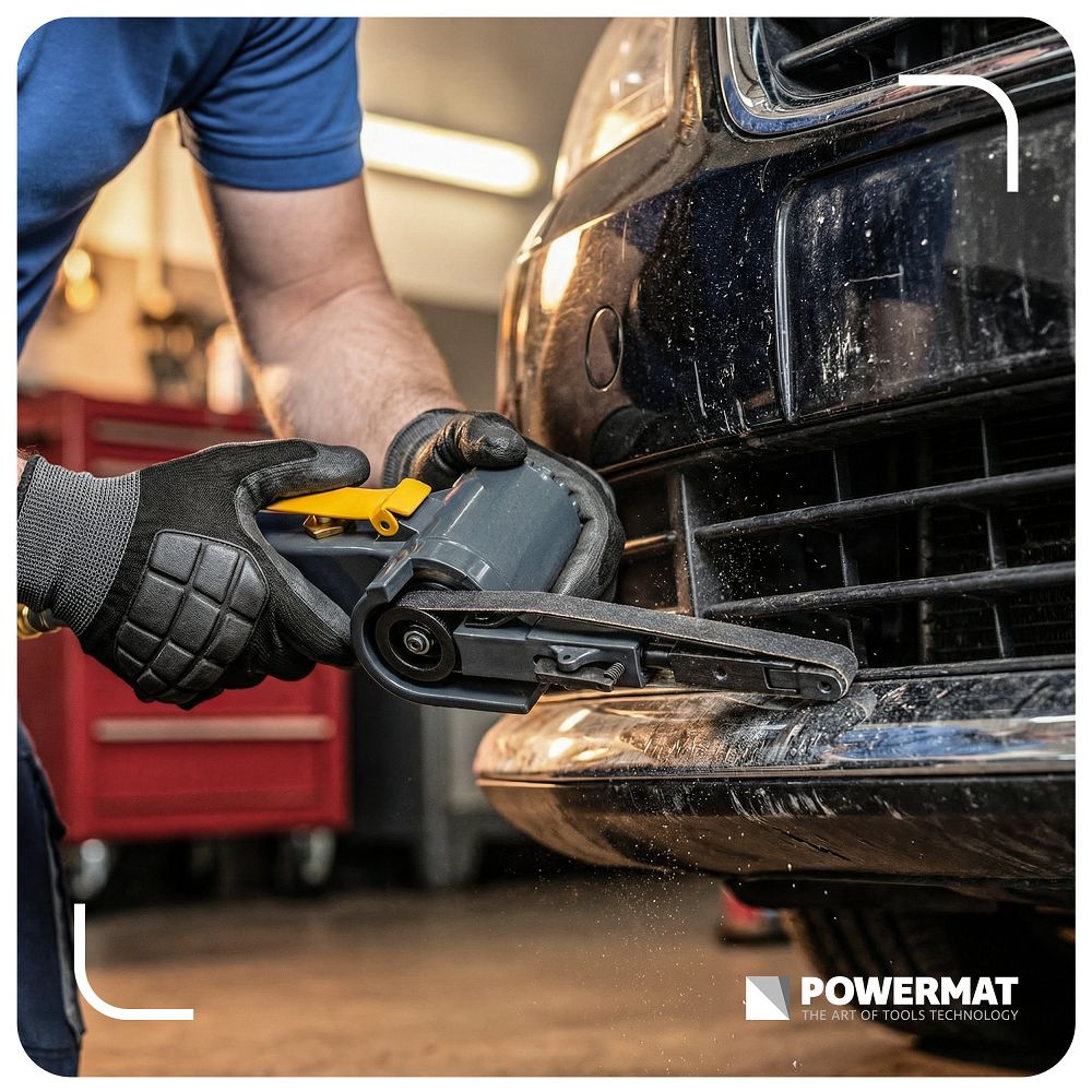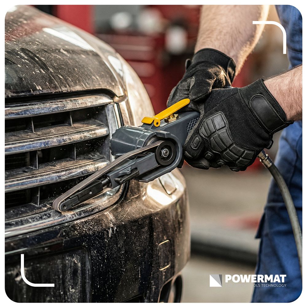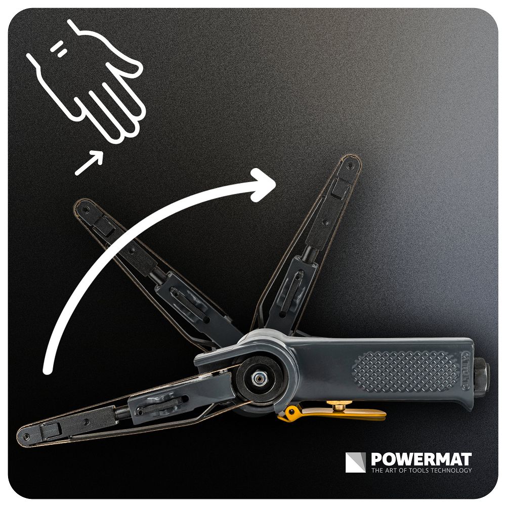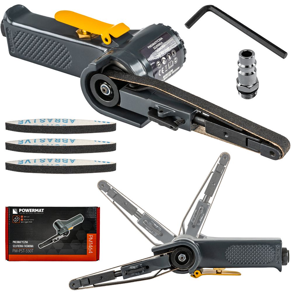 Șlefuitorul pneumatic cu bandă, 10x330mm | PM-PST-330T este un instrument pentru șlefuirea, curățarea și prelucrarea precisă a metalului și a altor materiale. Banda îngustă de 10 x 330 mm vă permite să ajungeți în locuri și detalii greu accesibile. Puteți prelucra cu precizie margini, suduri și colțuri fără a combina și pierde timp. Viteza de 20.000 rpm înseamnă o îndepărtare eficientă a materialului și un timp de prelucrare mai scurt. Lucrați mai rapid, iar rezultatul este uniform și repetabil.
