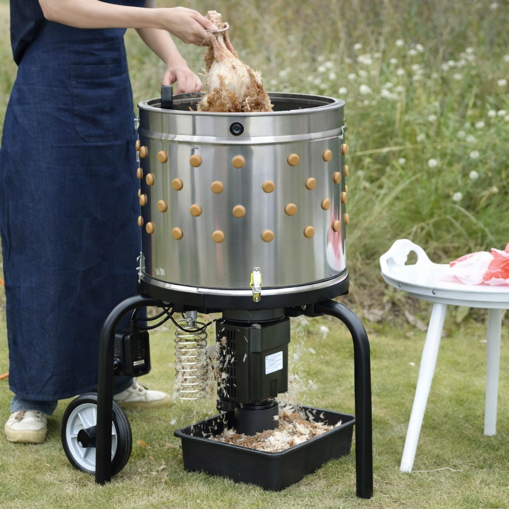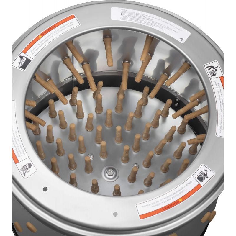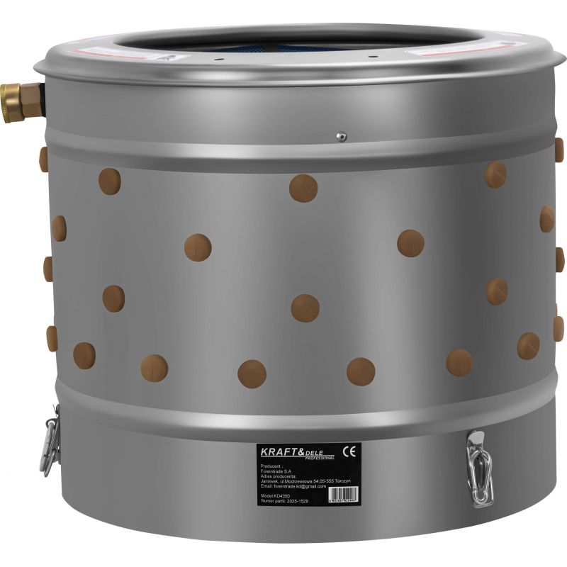 Spelucă de păsări, 550W, 400mm | KD4350 este un dispozitiv puternic și fiabil, conceput pentru îndepărtarea rapidă a penelor de la găini și alte păsări de curte. Designul a fost conceput având în vedere ușurința în utilizare, durabilitatea și eficiența ridicată a muncii. Dispozitivul va funcționa bine atât în gospodării, cât și în ferme mici sau fabrici de procesare. Modelul este echipat cu un bol de lucru mare din oțel, cu un număr de degete de cauciuc (122 buc.), care îndepărtează eficient penele în timpul rotirii tamburului.