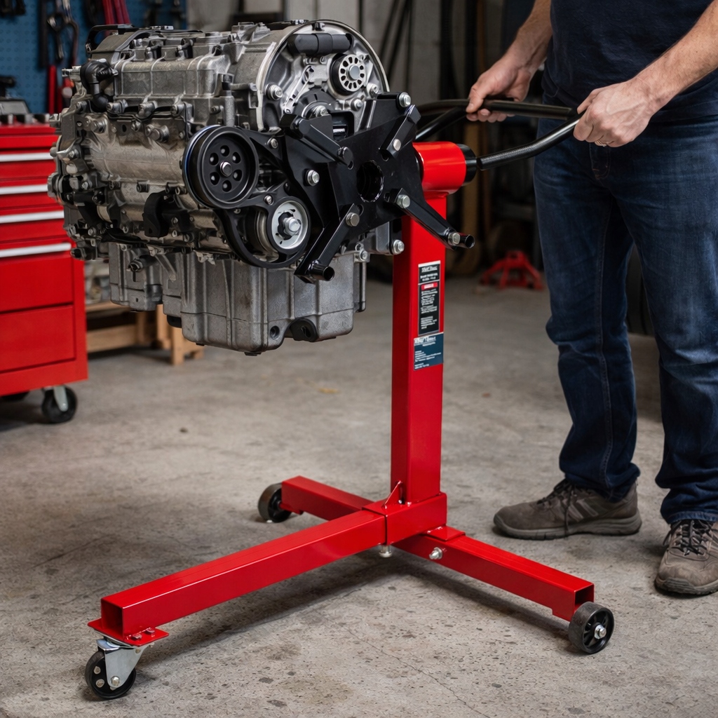 Suportul motor și cutie de viteze, 400 kg | KD1360 este un suport profesional conceput pentru lucrări de service, asamblare sau întreținere. Acesta permite poziționarea confortabilă și sigură a motorului, ceea ce facilitează foarte mult funcționarea acestuia în atelier. Datorită construcției sale solide și capacității de încărcare de până la 400 kg, suportul poate manipula perfect componente grele. Capul rotativ cu patru brațe reglabile permite rotirea motorului la 360°, ceea ce asigură acces complet la toate piesele sale. Mecanismul de blocare permite reglarea stabilă în poziția selectată. Este echipat cu trei roți metalice, dintre care una este pivotantă, ceea ce permite mișcarea ușoară a suportului. Designul pliabil economisește spațiu și facilitează depozitarea dispozitivului.