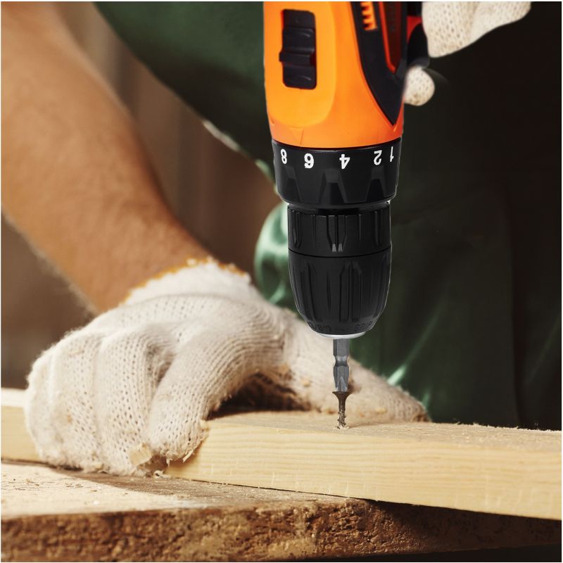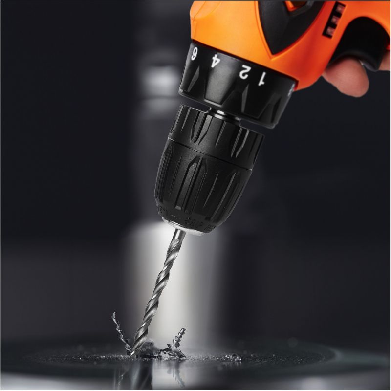 Ambreiajul încorporat cu reglare a cuplului în 18 trepte + mod de găurire permite înșurubarea precisă fără riscul de a deteriora materialul. În plus, iluminarea LED facilitează lucrul în locuri cu acces limitat la lumină, iar designul ergonomic cu o suprafață cauciucată asigură o prindere sigură și confort în timpul utilizării.