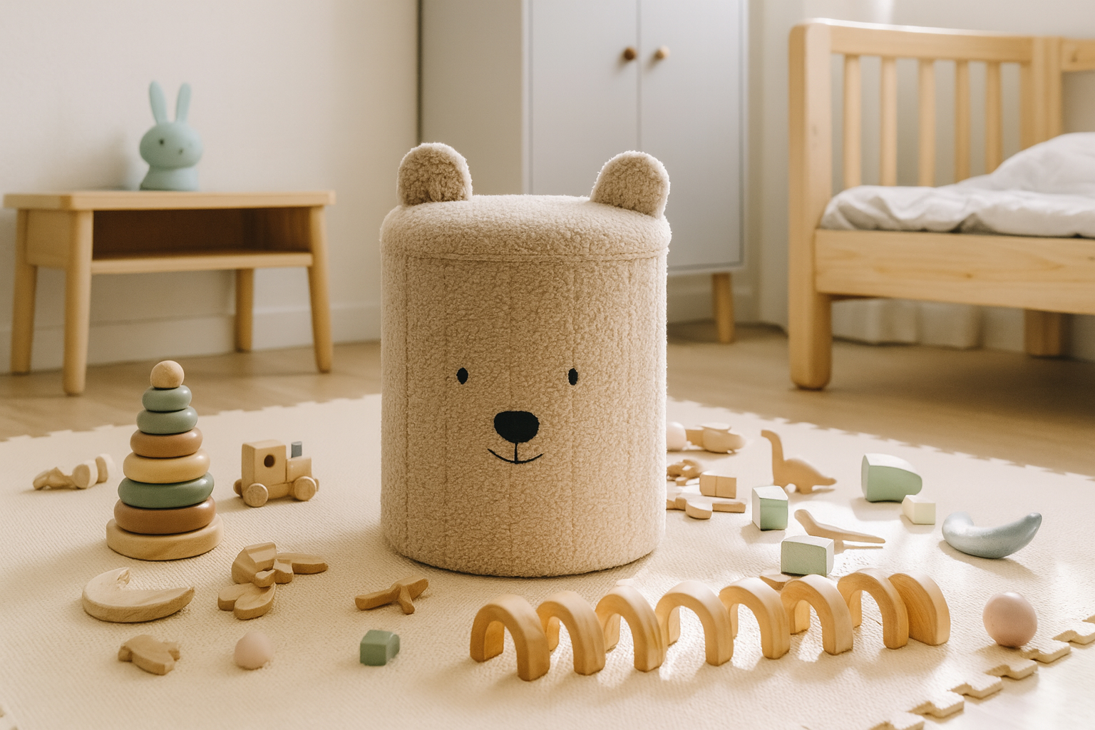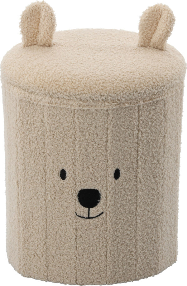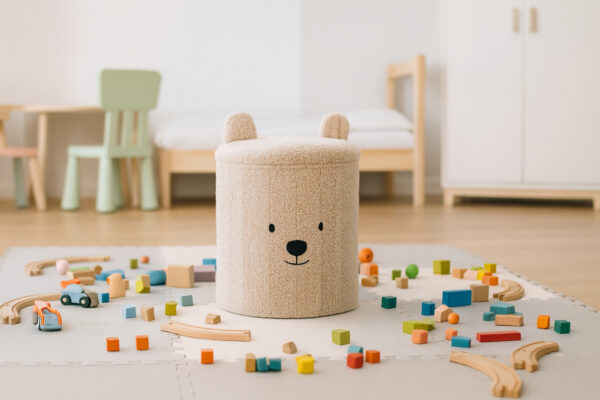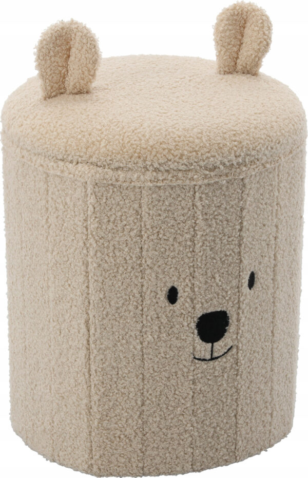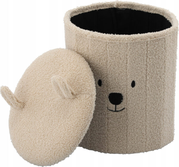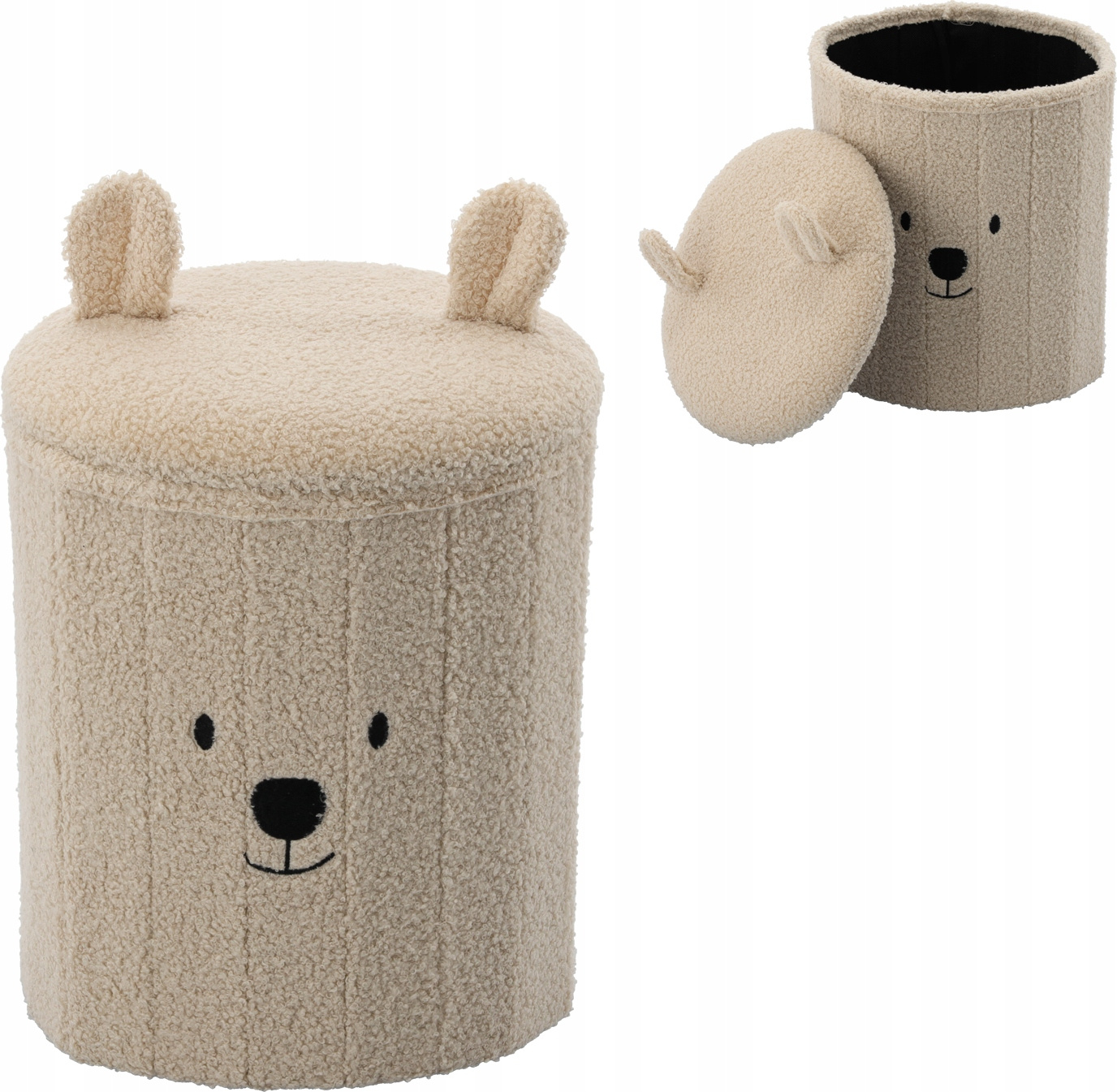 Taburet pentru copii cu spațiu de depozitare, 28x28x34cm | bej combină funcția unui scaun confortabil și a spațiului de depozitare, fiind potrivit pentru orice cameră. Datorită dimensiunilor sale compacte de 28 × 28 × 34 cm, este potrivit pentru living, dormitor, hol sau camera copiilor, unde nu ocupă mult spațiu.