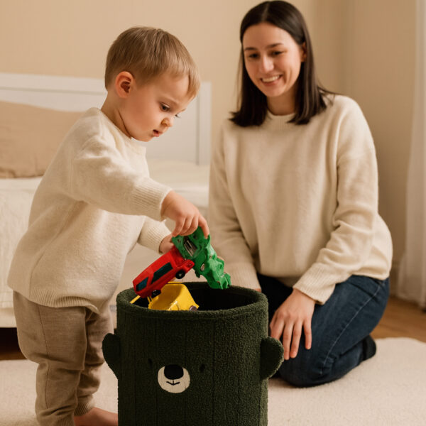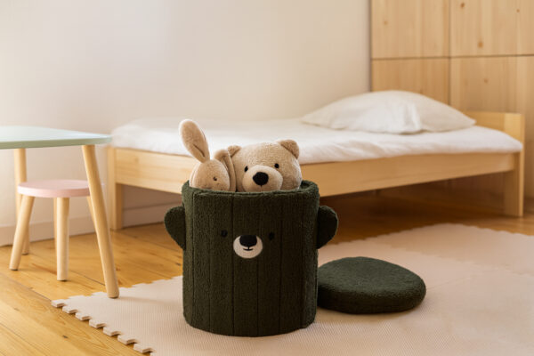 Taburet pentru copii cu spațiu de depozitare, 28x28x34cm | verde combină funcția de scaun confortabil și spațiu de depozitare, fiind potrivit pentru orice cameră. Datorită dimensiunilor sale compacte de 28 × 28 × 34 cm, este potrivit pentru living, dormitor, hol sau camera copiilor, unde nu ocupă mult spațiu.
