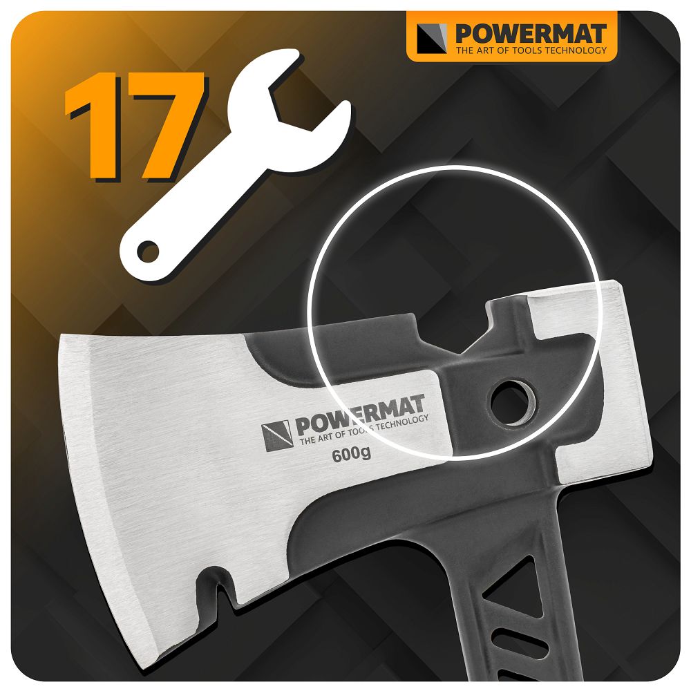 Toporul de tâmplar 3 în 1, 365 mm | PM-AX-600-910T este o unealtă robustă concepută pentru despicarea și prelucrarea eficientă a lemnului în condiții de câmp și pădure. Toporul este fabricat dintr-o singură bucată de oțel forjat și călit, ceea ce garantează durabilitate maximă și rezistență la utilizare intensivă. Unealta combină un topor, un ciocan și o cheie de 17 mm, ceea ce vă permite să loviți cu ciocanul, să împingeți, să despicați și să scoateți eficient cuie.