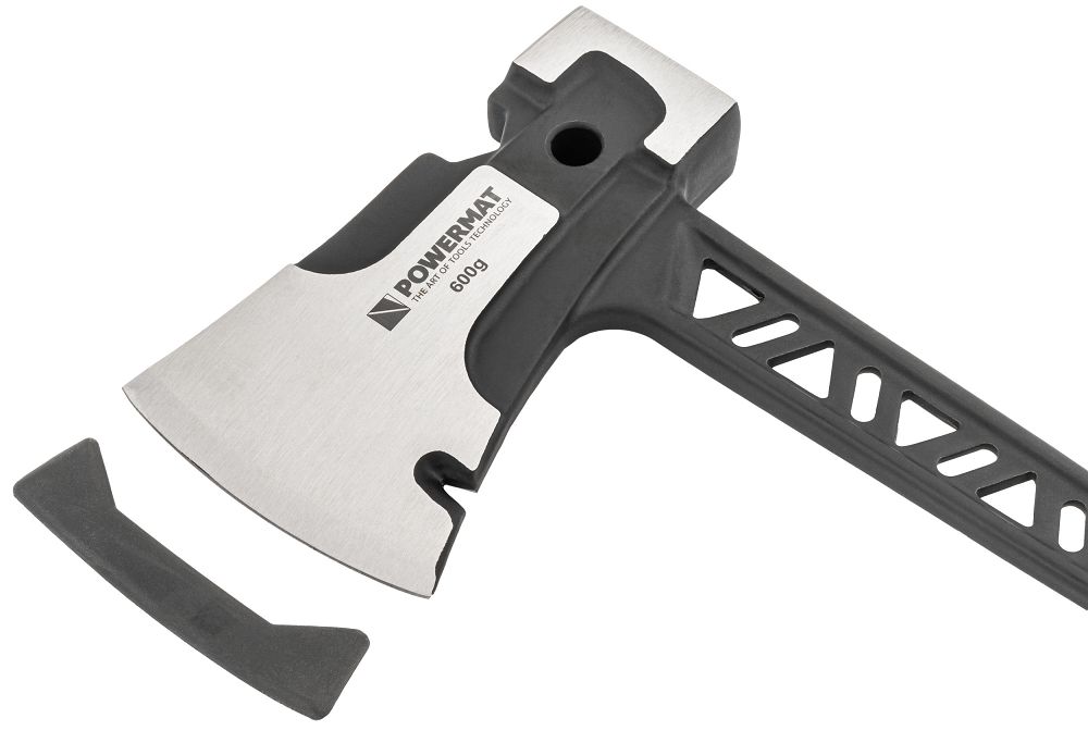 Mânerul are un strat antiderapant care asigură o prindere stabilă în orice situație. Găurile suplimentare de amortizare a vibrațiilor îmbunătățesc semnificativ confortul și reduc oboseala mâinii în timpul utilizării prelungite. Un capac special de cauciuc protejează muchia tăietoare de tocire și deteriorare în timpul transportului. Acesta protejează utilizatorul de tăieturi accidentale și prelungește durata de viață a lamei. Din motive de siguranță, toporul este livrat fără o lamă ascuțită. Se recomandă ascuțirea acesteia înainte de prima utilizare pentru a obține eficiență maximă și precizie de tăiere.