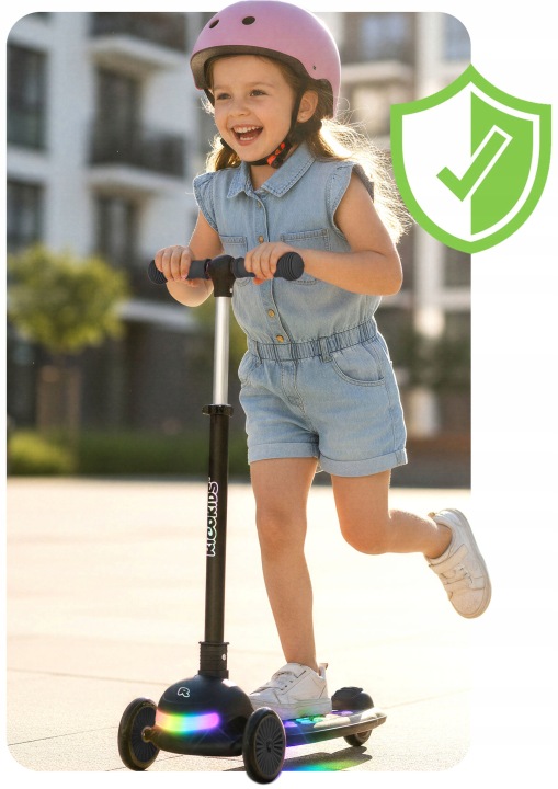 Trotineta cu trei roți iluminată, neagră | Ricokids Glowi oferă o călătorie stabilă și un control ușor, care susține dezvoltarea echilibrului și a coordonării. Construcția ușoară permite o manevrare ușoară și un control bun în timpul mersului. Modelul este echipat cu elemente LED luminoase, care sporesc vizibilitatea și, în același timp, fac mersul mai atractiv, în special în condiții de iluminare slabă.