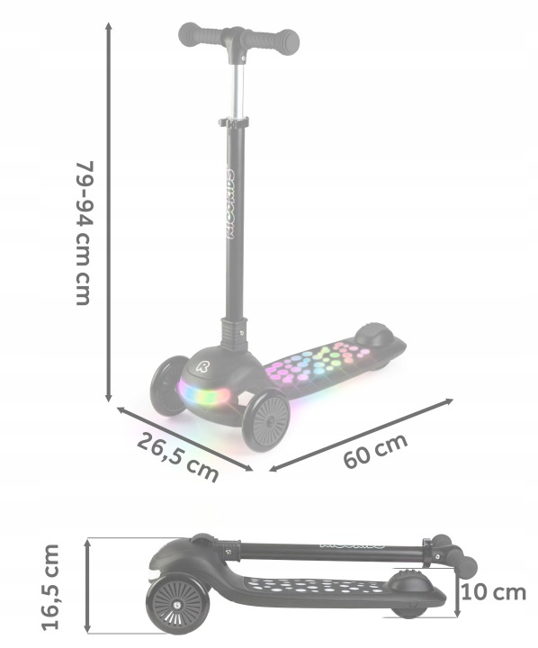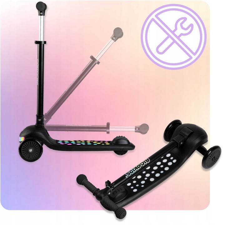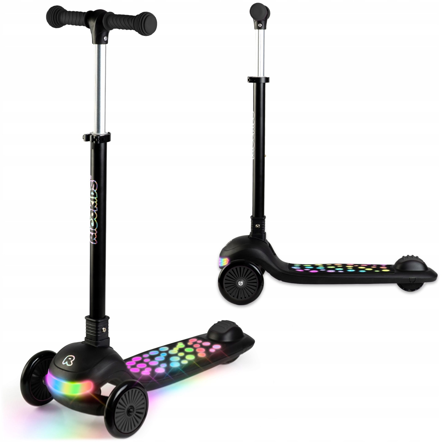 Trotinetă cu trei roți iluminată, neagră | Ricokids Glowi
