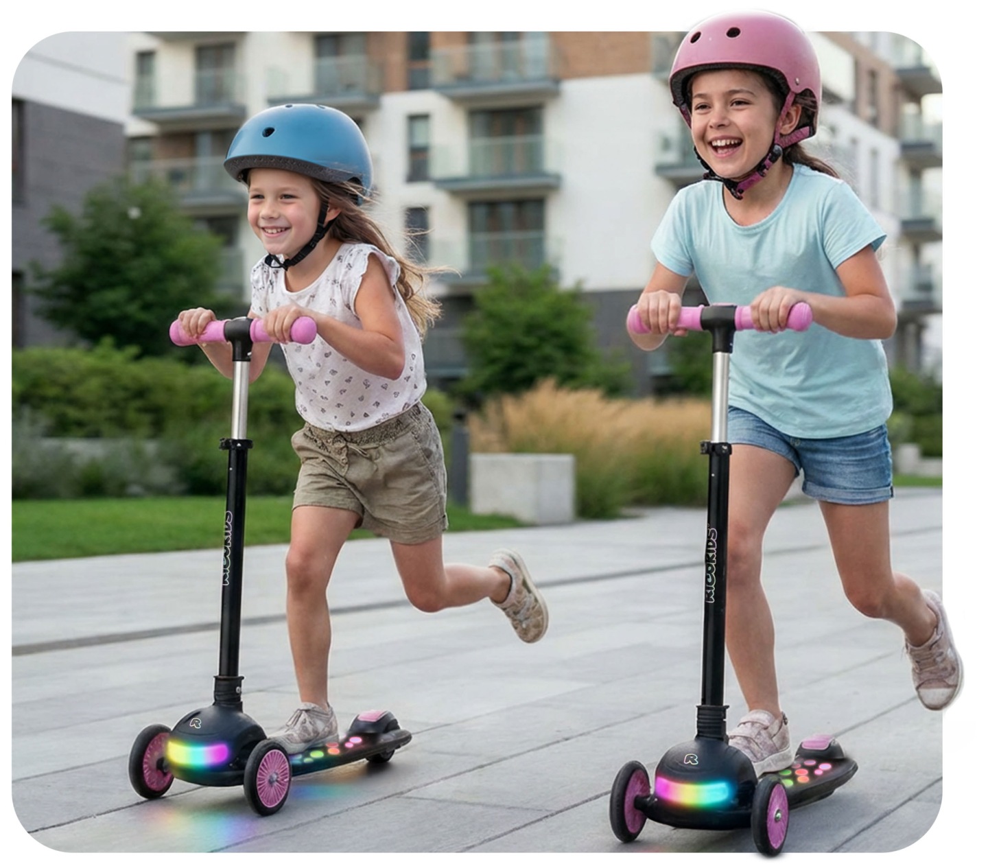 O suprafață largă antiderapantă și mânerele ergonomice sporesc confortul și siguranța în utilizarea zilnică. Trotineta este potrivită pentru activități regulate în aer liber și susține mișcarea activă a copiilor. Datorită designului său practic, o puteți transporta și depozita cu ușurință, ceea ce veți aprecia atunci când vă deplasați și acasă.