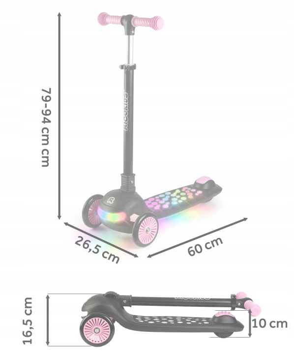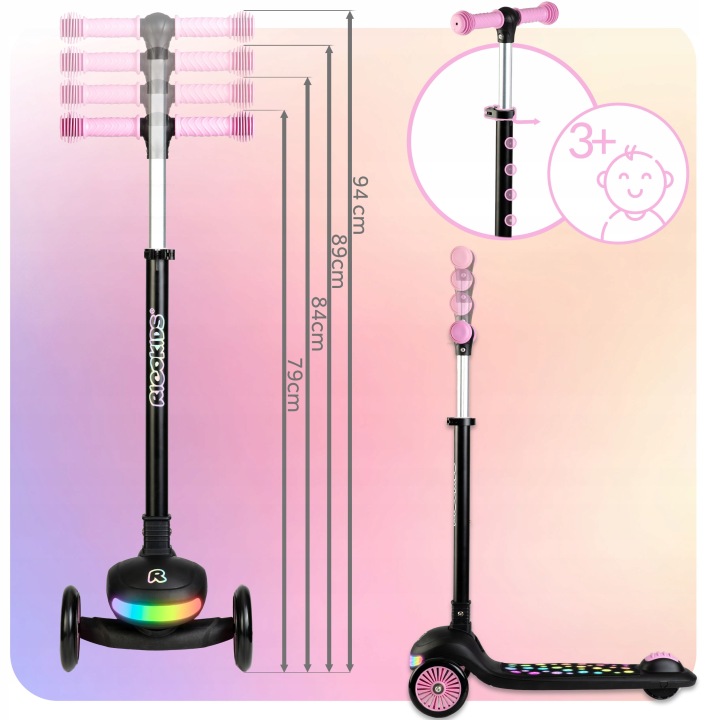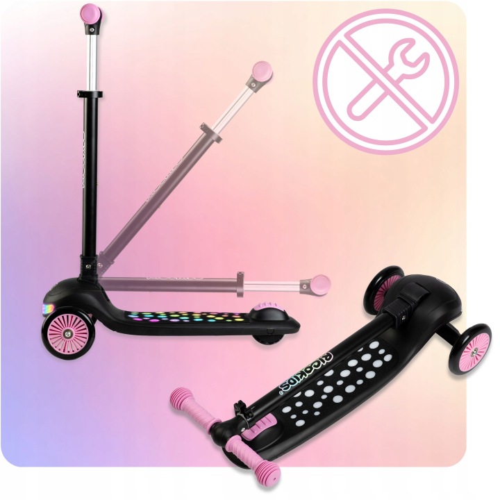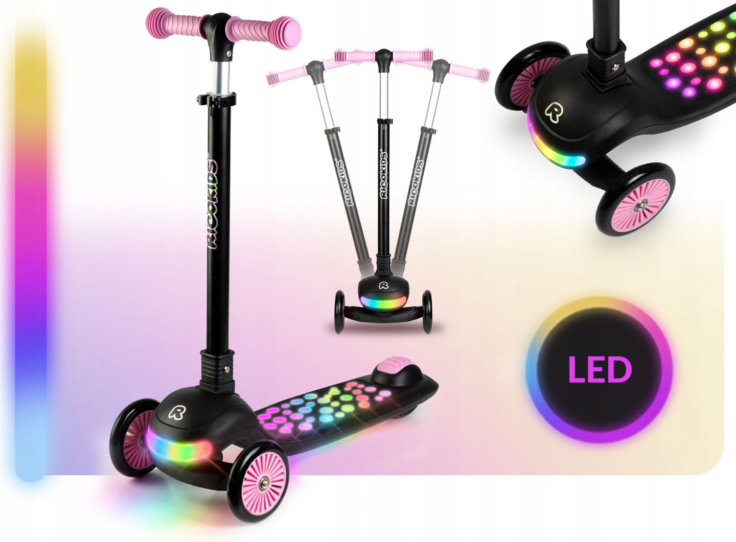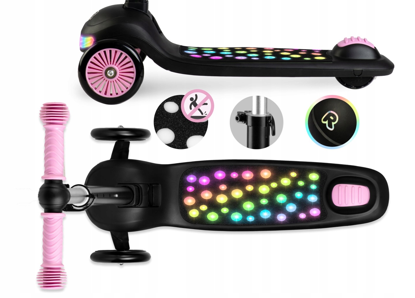 Trotinetă iluminată cu trei roți, negru-roz | Ricokids Glowi