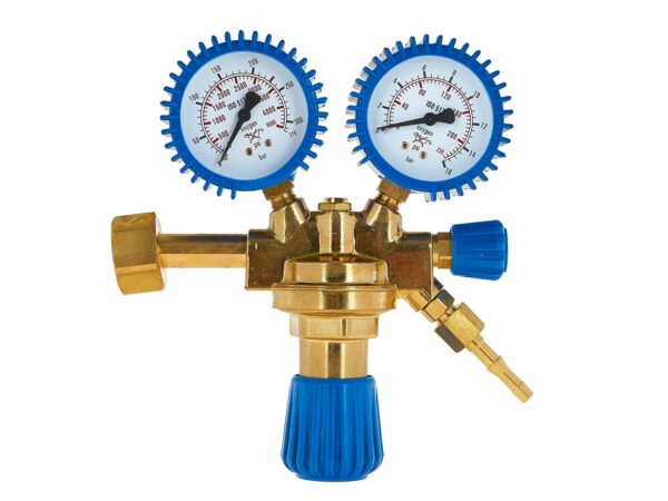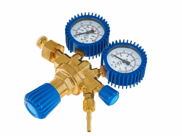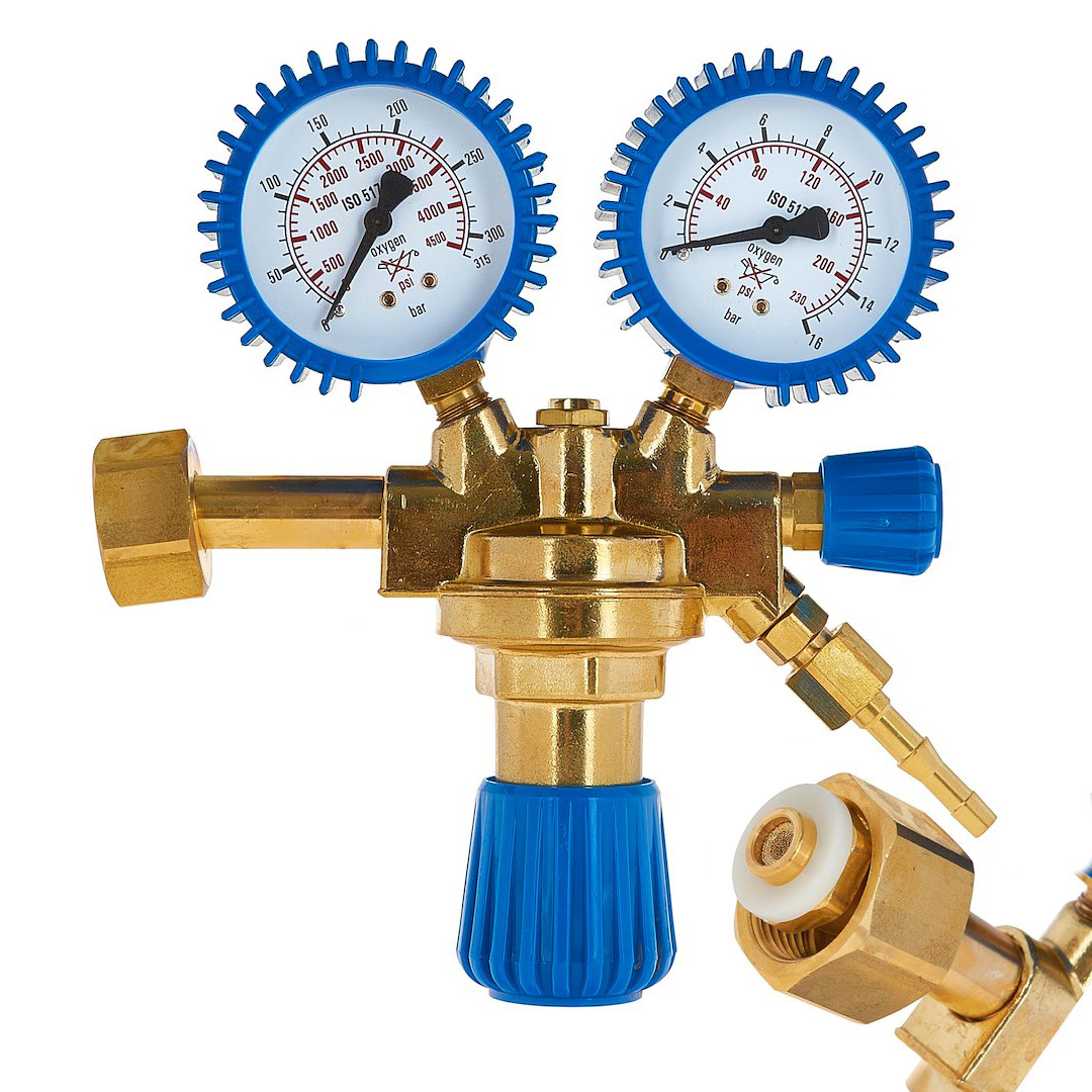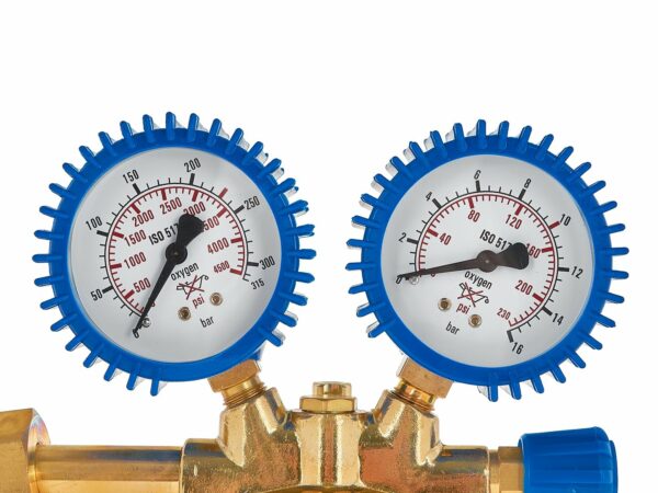 Valva de reducere de 200 BAR | GEKO este un dispozitiv fiabil și sigur, conceput pentru a reduce și stabiliza presiunea gazului care curge din buteliile de oxigen. Datorită manometrelor precise și construcției robuste din alamă de înaltă calitate, este ideală pentru ateliere de sudură, instalații industriale, servicii tehnice și aplicații de laborator.