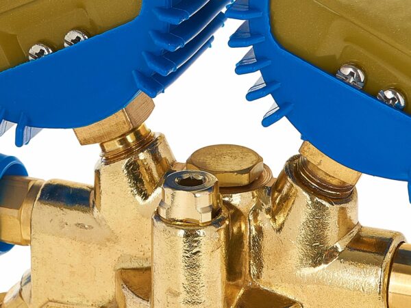 - Două manometre ușor de citit – verificați presiunea de intrare și ieșire în bari și PSI