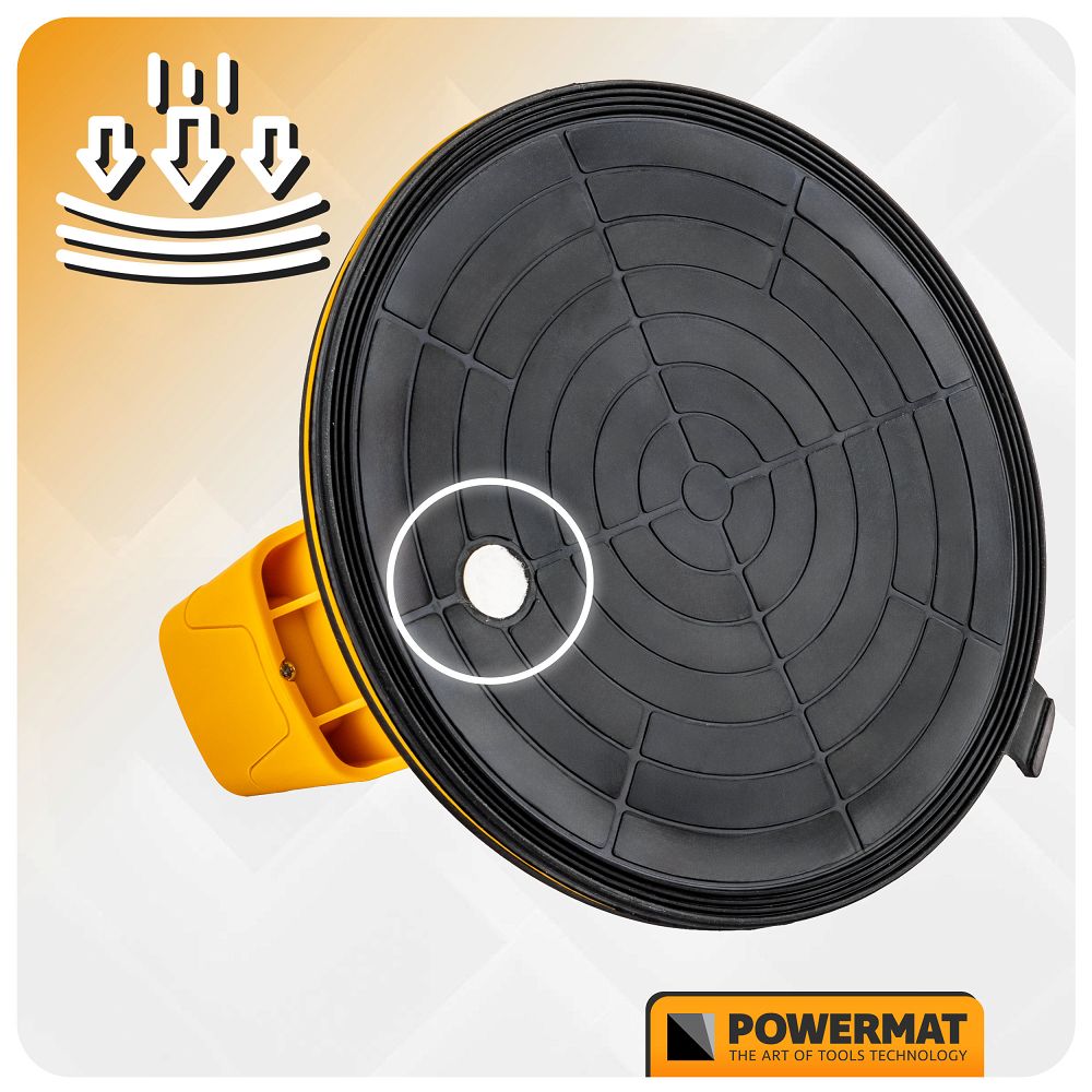 Ventuză cu vid pentru gresie și sticlă, 200 kg | PM-APPS-200M este concepută pentru manipularea în siguranță a materialelor netede în timpul lucrărilor de asamblare și construcție. Dispozitivul oferă o capacitate maximă de ridicare de 200 kg și o limită de ridicare sigură de 180 kg, ceea ce permite lucrul fiabil cu sarcini grele în parametrii specificați. Diametrul de 200 mm oferă o suprafață de contact largă care susține montarea stabilă pe materiale netede, cum ar fi sticla sau gresia.
